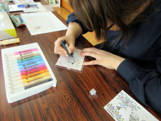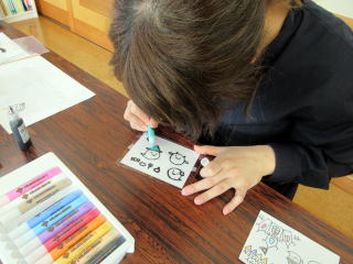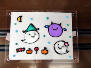 「グラスデコ」という絵具を使って、縁取りをして色をぬって仕上げます。