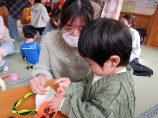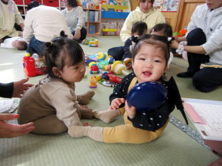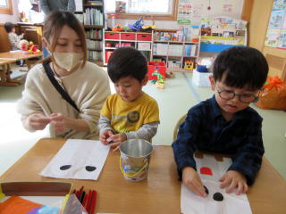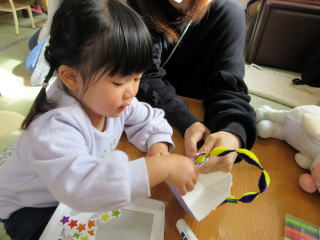 乾いたら出来上がりです。 お母さんが製作している間は遊んで待っていましょう。