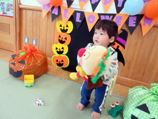 アンパンマンと一緒にパチリ。 お姫様になってかぼちゃバックを持ってパチリ。