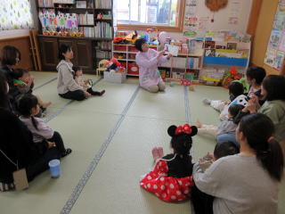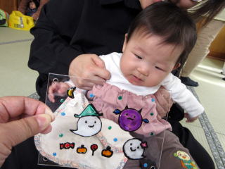いつもの手遊び「じんじんぼー、じんじんぼー」でまた笑顔ね。