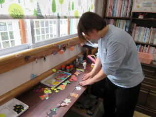 色々なパーツを選んでガーランド作りを楽しみました。。