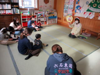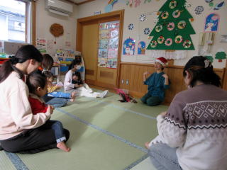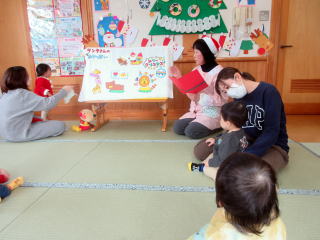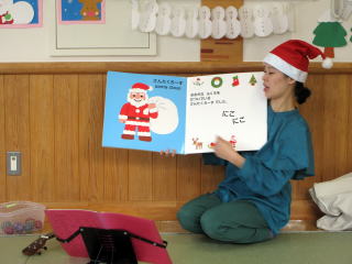 ウクレレに合わせてママバスに乗ったよ。大型絵本「クリスマスのかくれんぼ」 何が出てきた?
