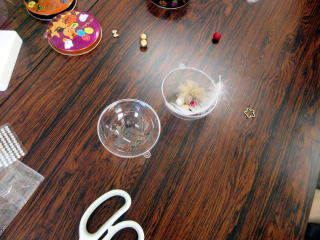 クリアボールに松ぼっくりやビーズ等を選んで入れていきます。