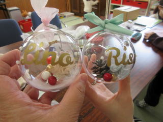 講師の先生に名前を入れていただき、素敵なオーナメントが出来ました。