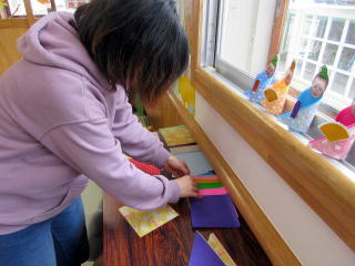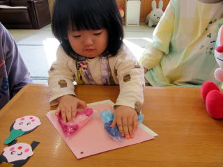 ペタペタ貼りましょう。 お母さんもお手伝いしてくれました。