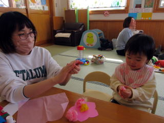 今月は2月の育児講座「卓上カレンダー作り」