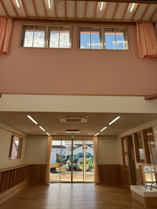 新園舎に引っ越してきて、早くも1カ月近くが過ぎました。補修箇所の整備もほぼ終了し、園庭の築山の整備と小さい子用の大型遊具の設置を残すのみとなりました。
